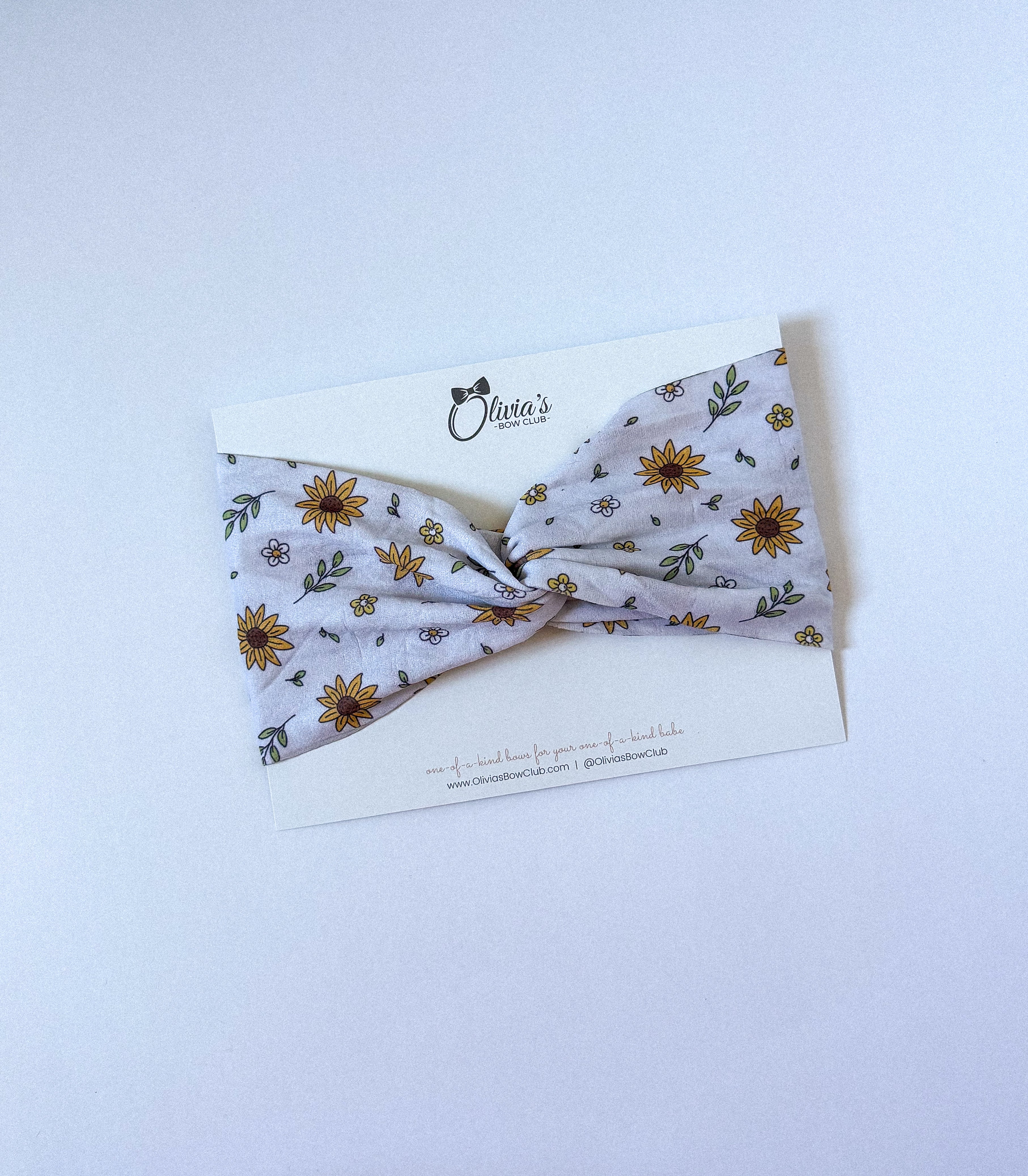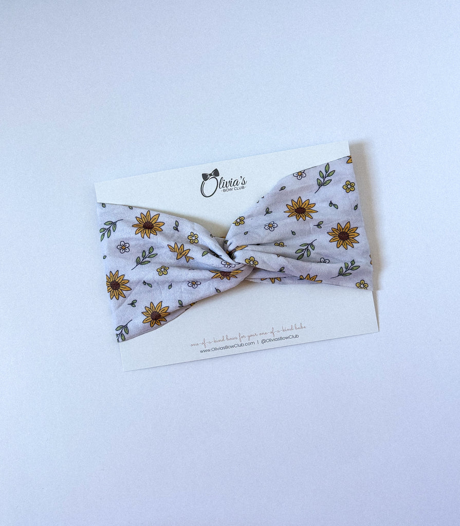 Versatile and Adorable. Turban style and super stretchy! That matching twisted mommy knot is perfect for mom buns and little babe buns alike! Measuring 16" unstretched, this style fits toddler - adult comfortably