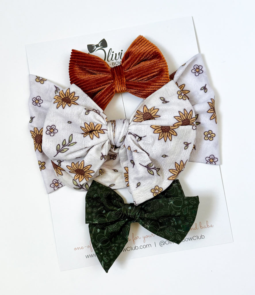 BOWS: Our bows are limited quantities and seasonal, so we do not accept regular returns for credit. However, if your bow is damaged or has an issue, we will absolutely take care of it for you and make sure you get a quality bow! Please email us at support@oliviasbowclub.com