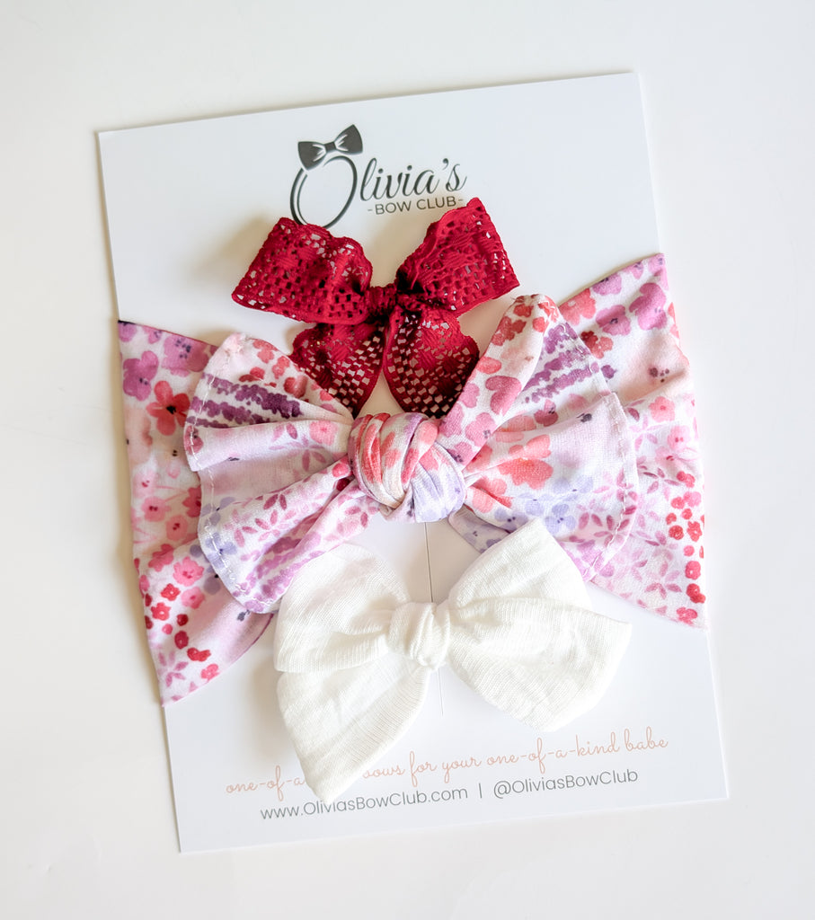 Returns for credit or a refund may be available at our discretion for wrongful renewals, damaged bows, and other special circumstances. Please email us at support@oliviasbowclub.com.