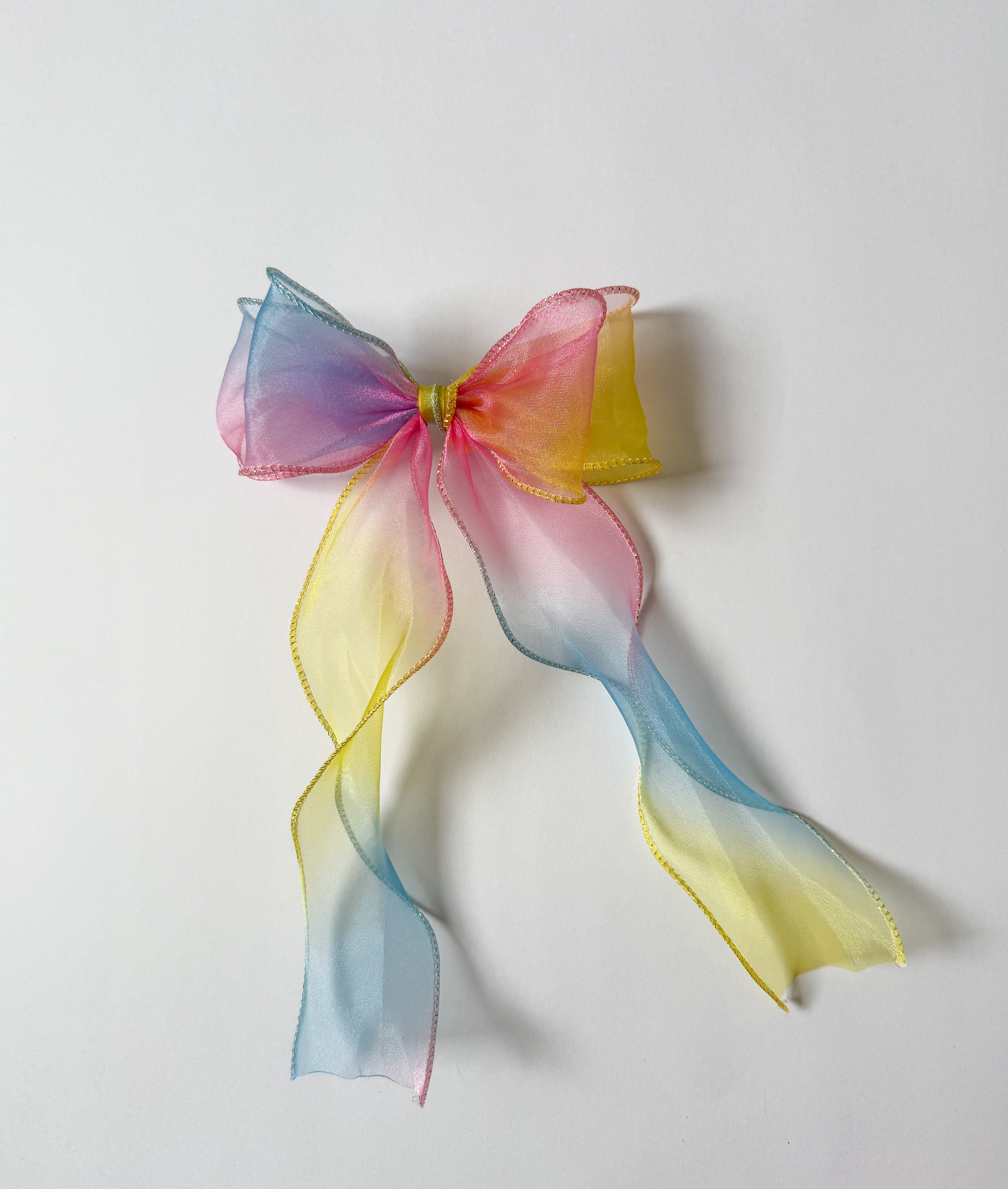 A dreamy lightweight sheer fabric that fades from soft pink to golden yellow to baby blue in the prettiest watercolor blend. Perfect for all things spring for mom, mini's, or both!