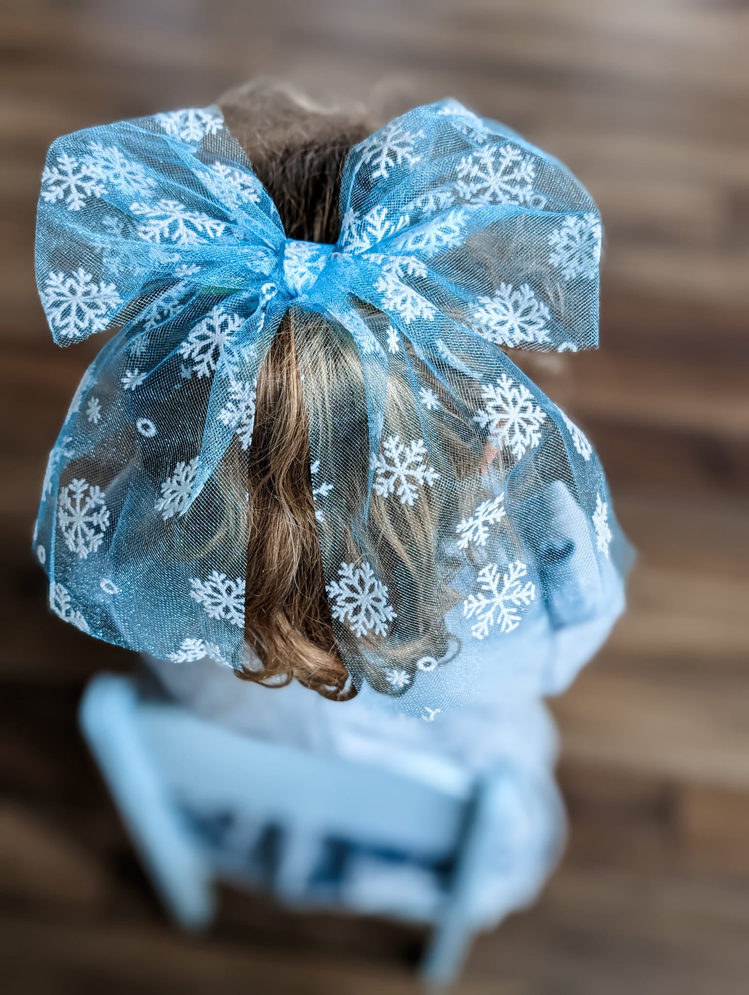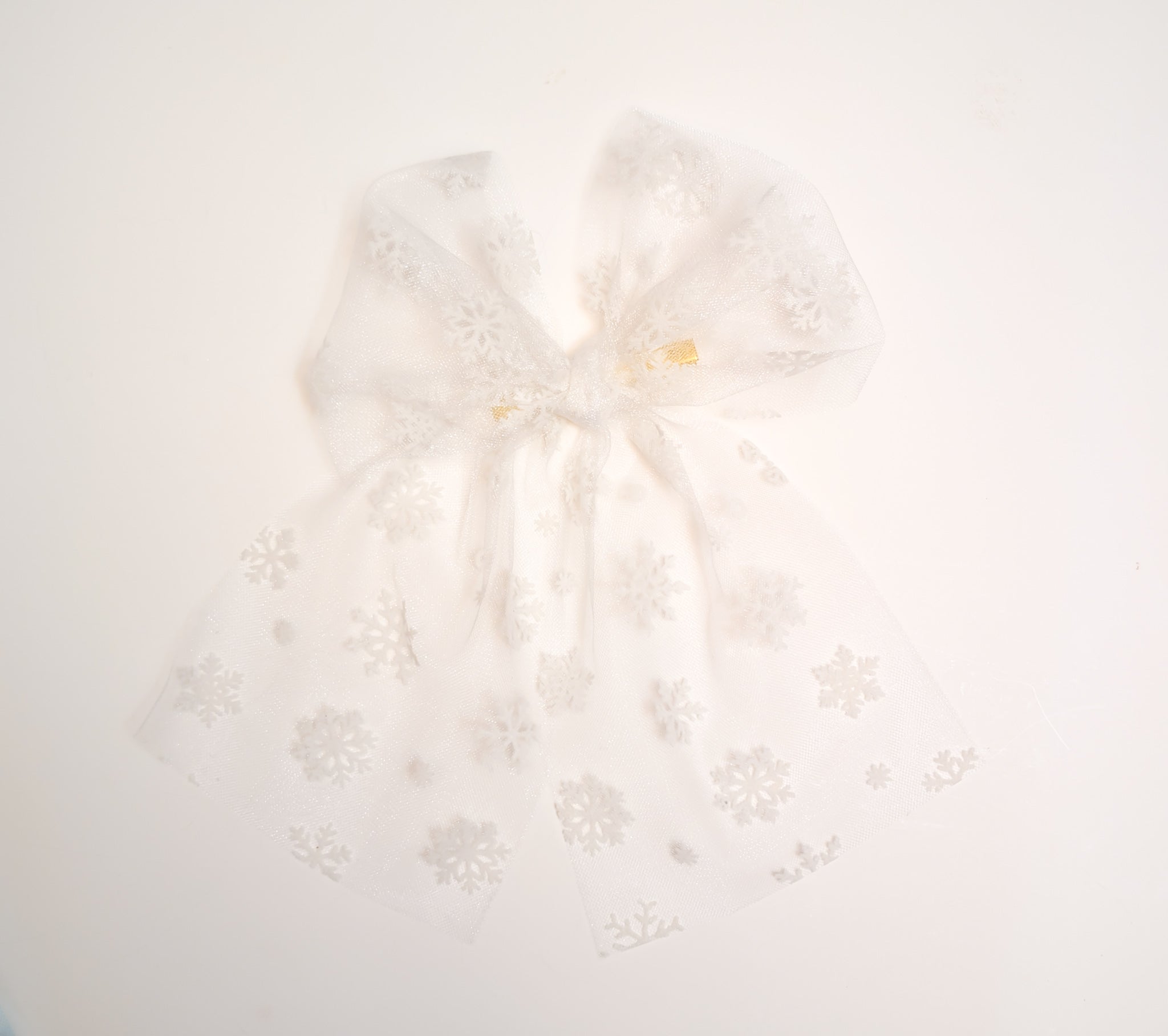 These lightweight, tulle bows are as whimsical as they are graceful, ideal for holiday photos, parties, or simply adding a sprinkle of snowy charm to everyday outfits.