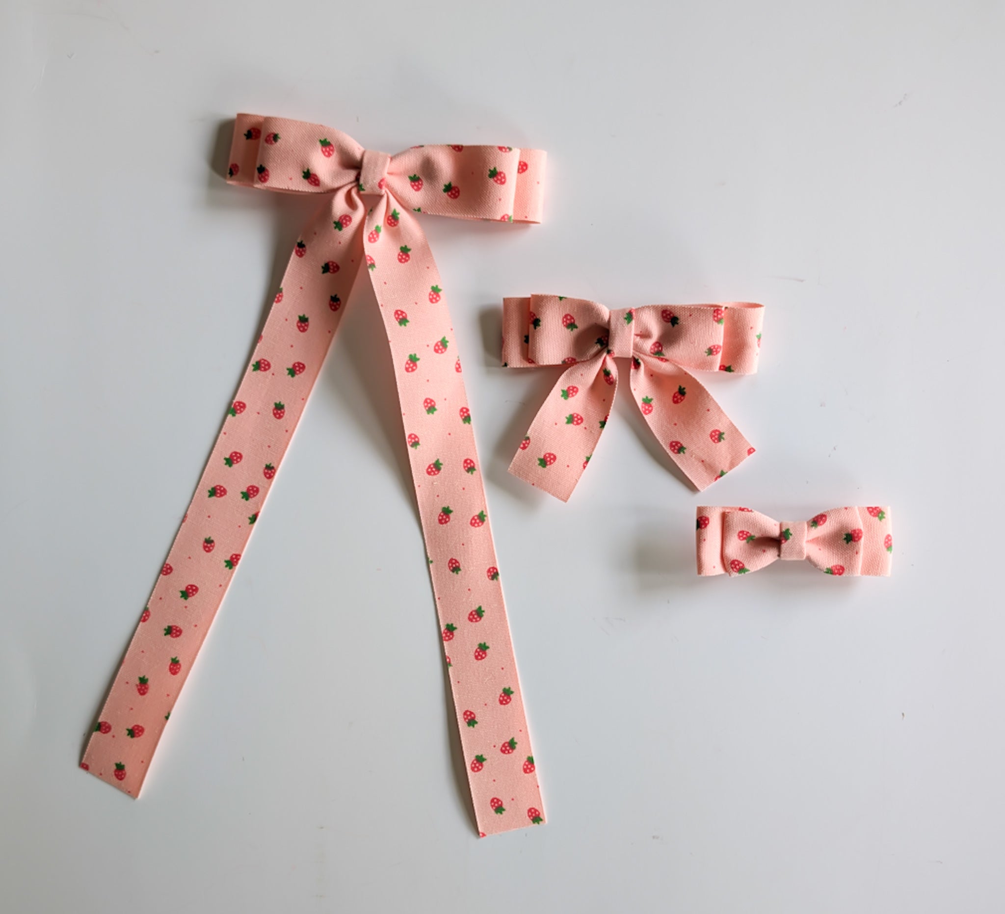 Get ready to fall berry much in love! Our Strawberry Fields Collection is as sweet as a summer day, featuring the cutest pink bows sprinkled with tiny strawberries. Whether you're twirling at a picnic or simply soaking up some sunshine, these bows add the perfect pop of fun and charm to any outfit.