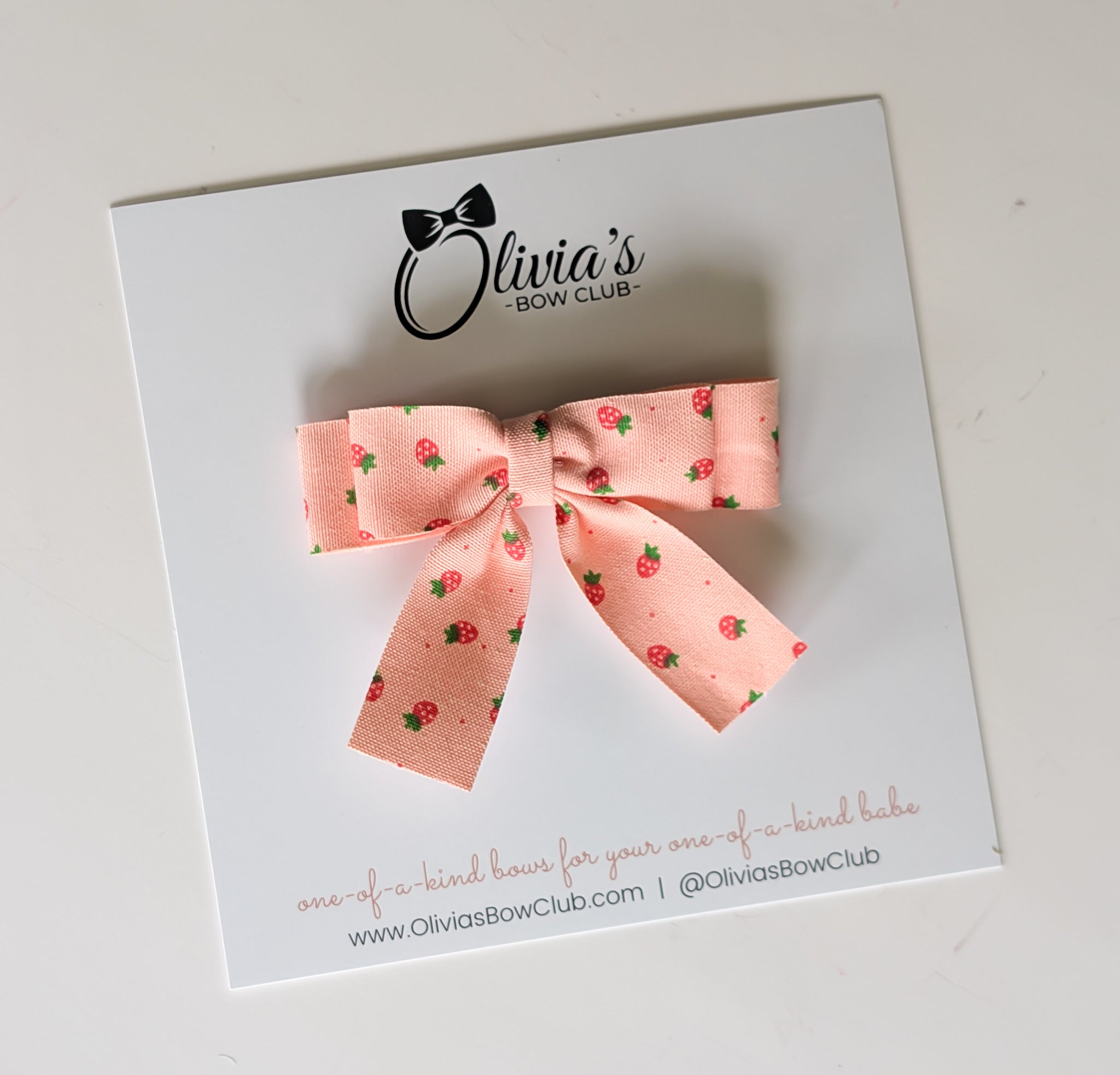 Get ready to fall berry much in love! Our Strawberry Fields Collection is as sweet as a summer day, featuring the cutest pink bows sprinkled with tiny strawberries. Whether you're twirling at a picnic or simply soaking up some sunshine, these bows add the perfect pop of fun and charm to any outfit.