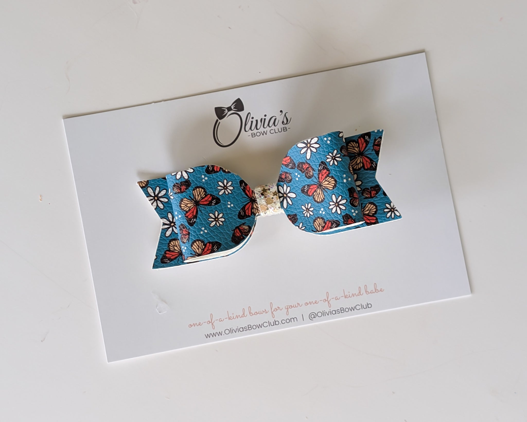Bold, beautiful, and full of flutter — Wildflower Wings is made for little ladies who love to dream big and chase butterflies! Featuring a rich teal backdrop sprinkled with golden daisies and delicate butterflies, and finished with a hint of sparkle at the center, this bow brings a touch of magic to every moment. ✨🌿